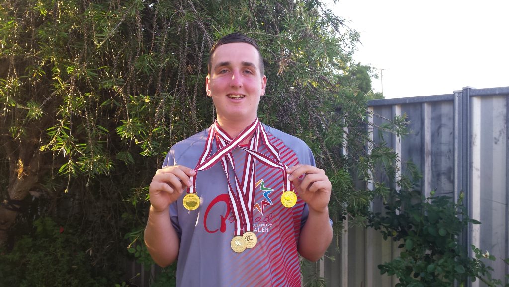 He won three gold medals in the regional little athletics championships in Toowoomba at the start of the month and broke records in U14 shot put and discus.