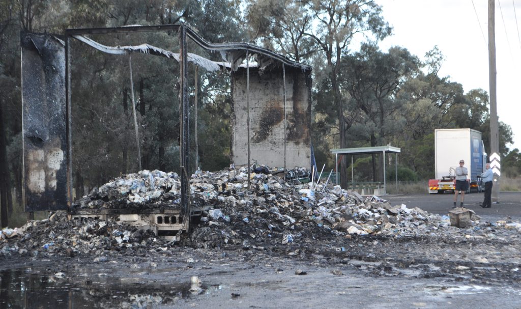 The cab had already been detached from the trailer and was not impacted. Crews brought the blaze under control around 1.45pm and remained at the scene to assist with the clean up. No one was injured.