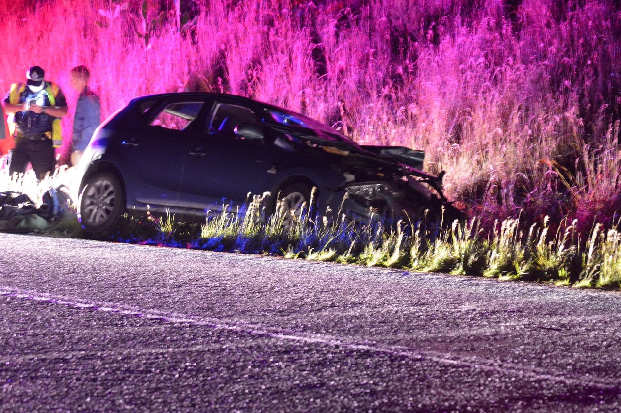 Initial reports say a driver hit a kangaroo and veered off the road.