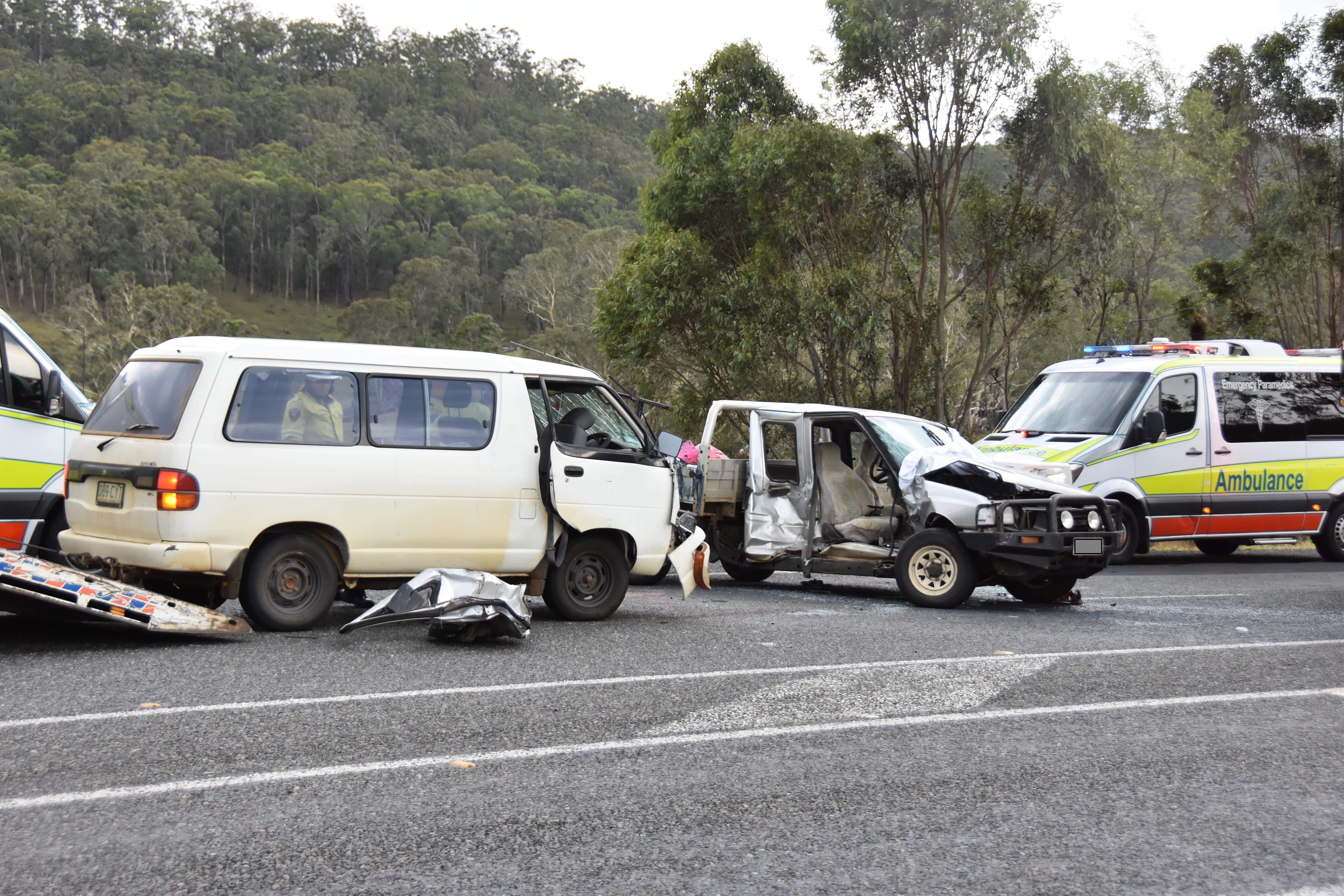 Initial investigations indicate at around 4pm a van was travelling west along the Cunningham Highway towards Warwick when it collided with a ute travelling east.