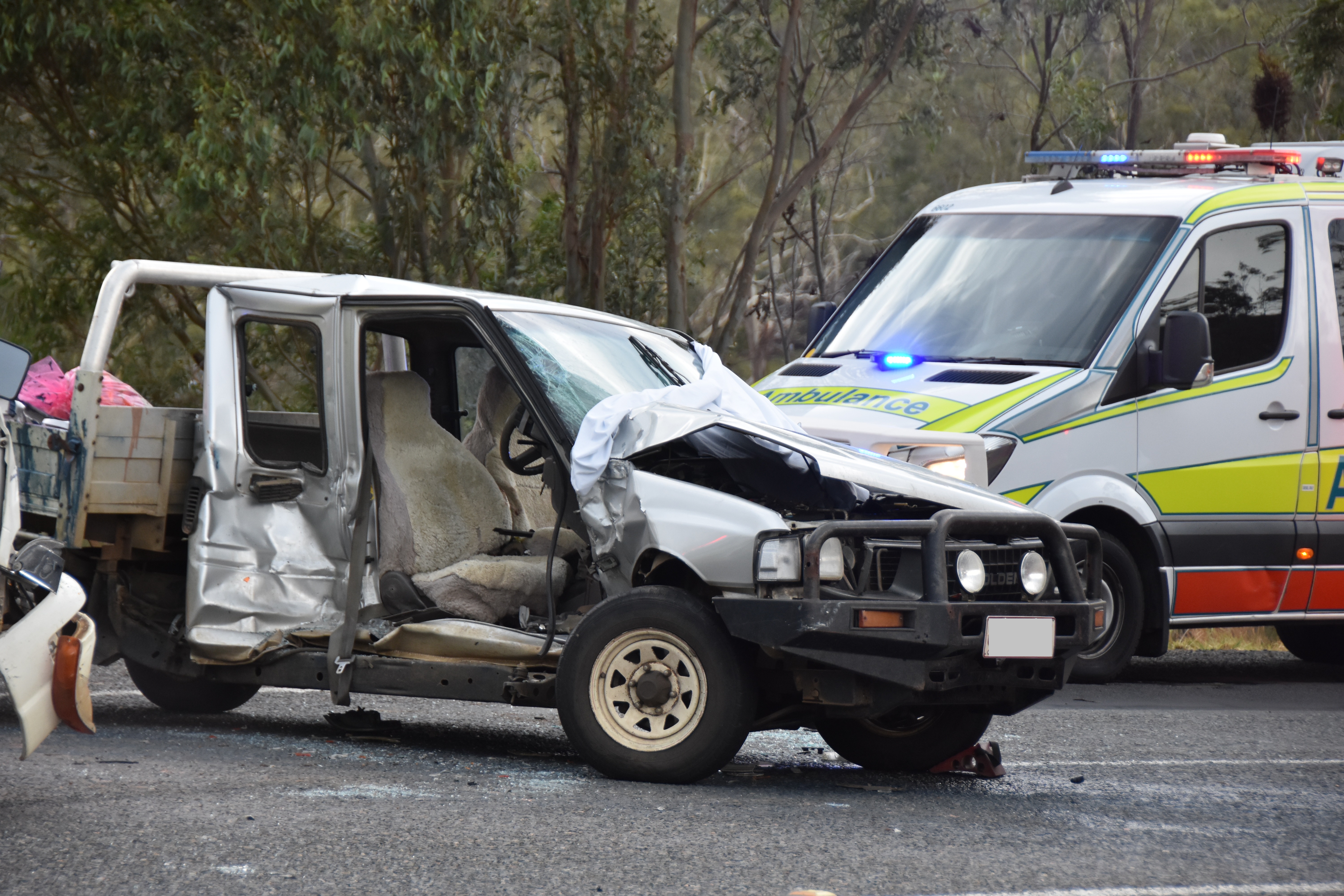 YESTERDAY: A driver was stuck in his ute for an hour after a high speed collision this afternoon.