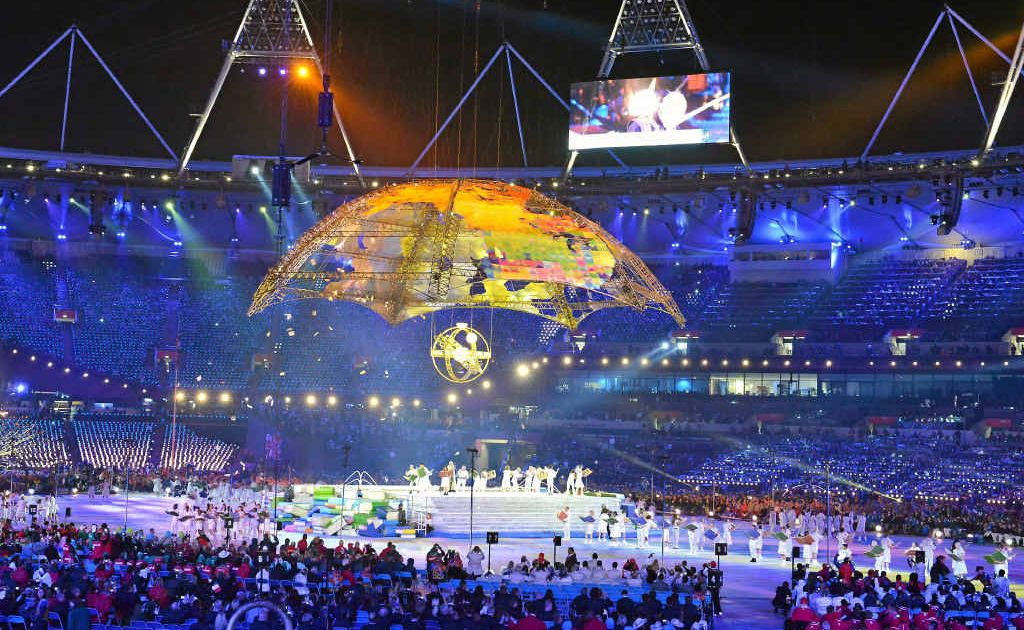 "The stadium looks great at night with the lights lighting up the Olympic colours.