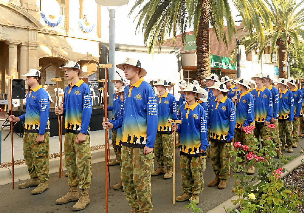 On Saturday the re-enactment stopped at Allora and Clifton state schools. Today the marchers will make a presentation at the Drayton War Memorial on their way to Toowoomba.