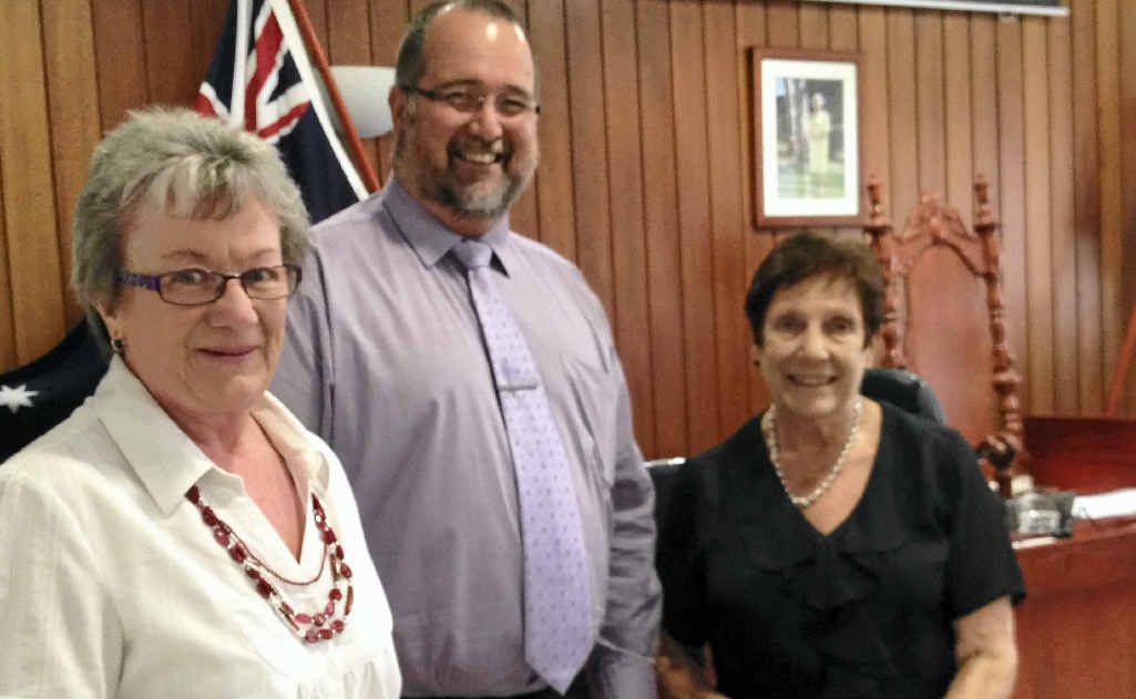 Two representatives from the Warwick Croquet Club attended the Southern Downs Regional Council general meeting yesterday to receive the handy tool which will keep the playing green clear of bunya nuts, leaves and twigs.