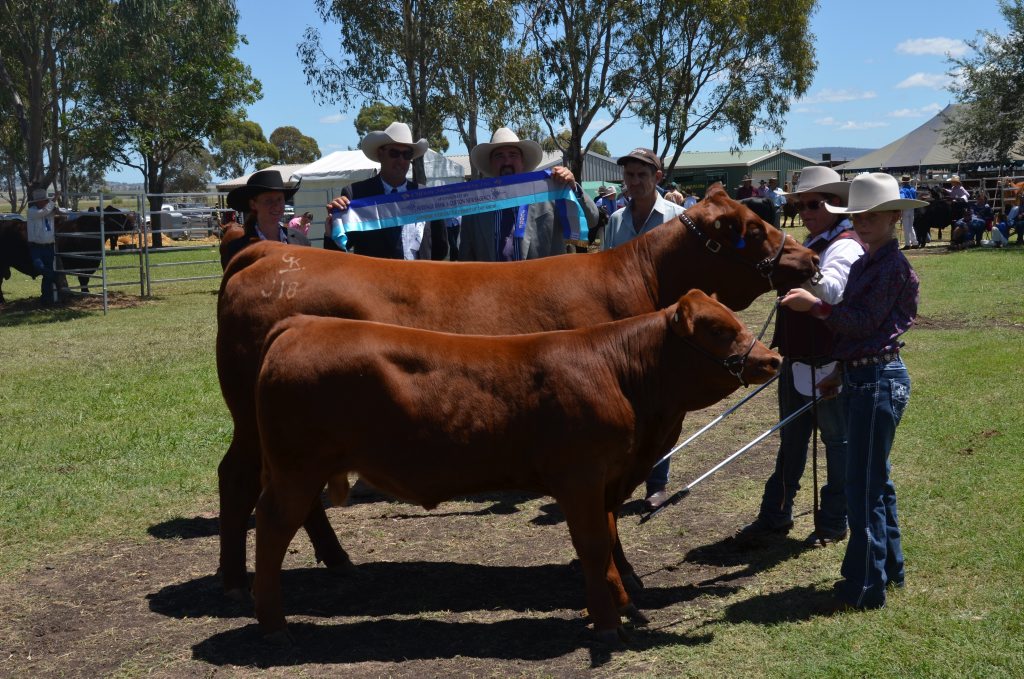 The Red Angus heifer and her calf were exhibited on Saturday morning by Kirrily Iseppi and Isabel Glasser.