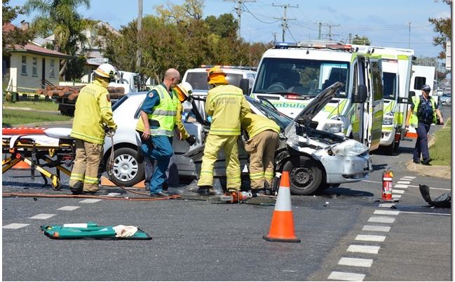 Just after 11am, emergency services were called to the intersection where two cars had collided.