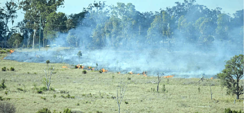 The fire was visible from Murray's Bridge Hall and extended for an area of more than 200 metres on the northern side of the Condamine River at 3pm yesterday.