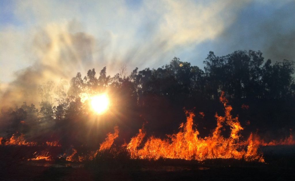 It is rare for a fire to burn on such a wide front in the grazing area west of Warwick.