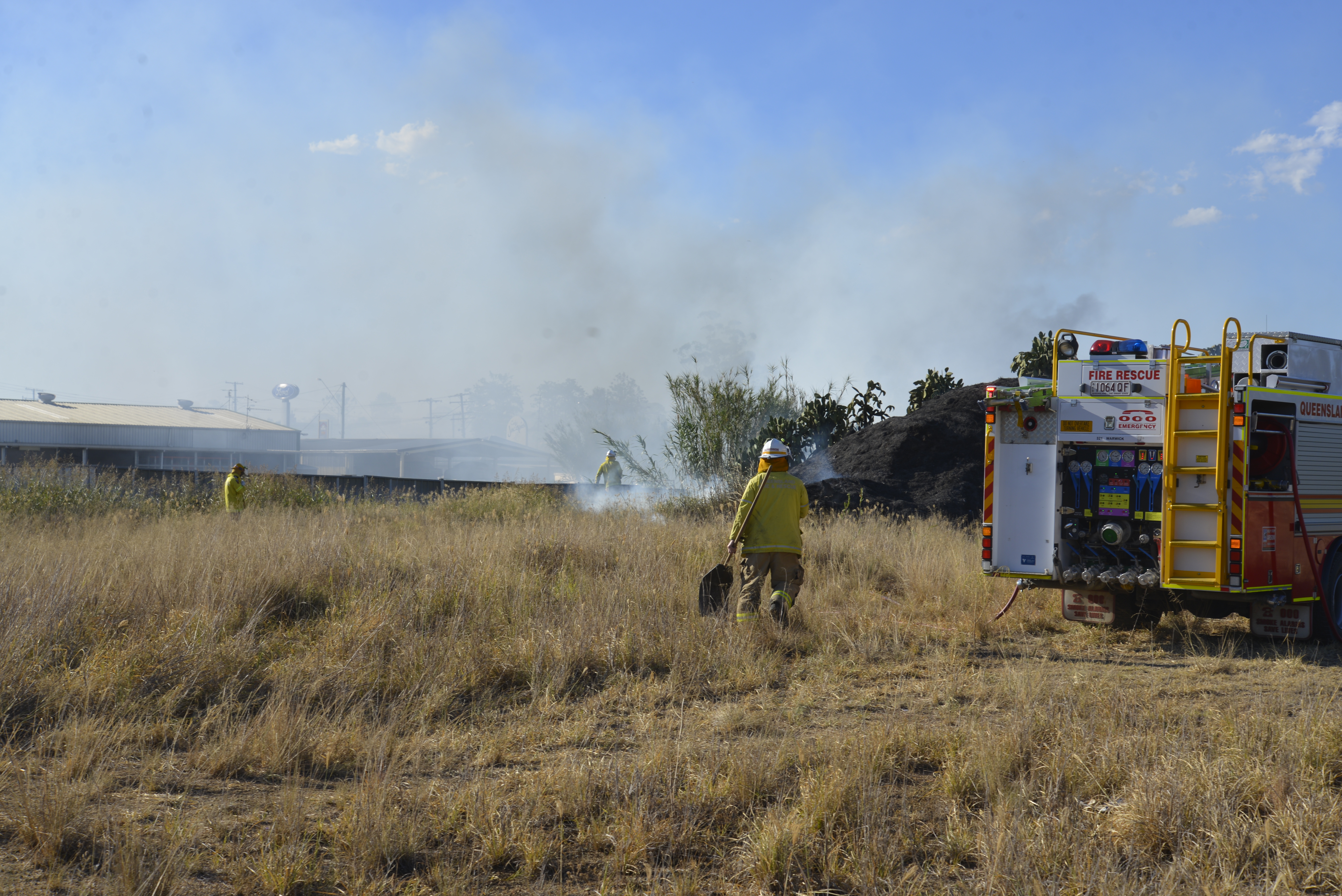 Two Queensland Fire and Rescue Service units fought the blaze from the grass paddock and a smaller unit was inside the dismantlers yard.