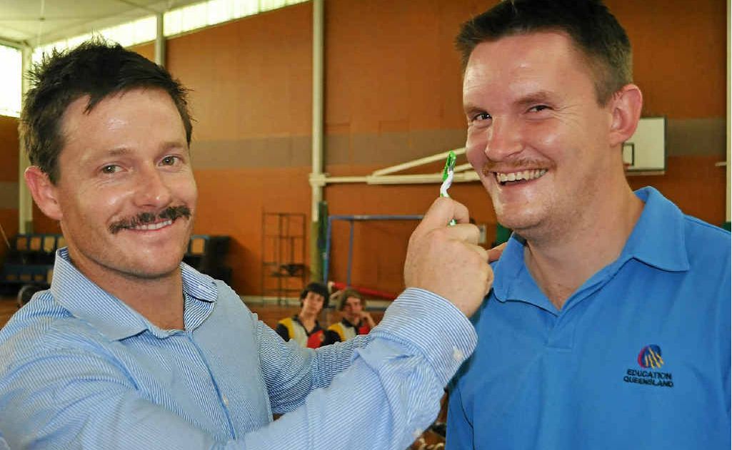After working on their moustaches for the past month teachers at Warwick State High School went under the razor as part of the push to bring prostate cancer and men's mental health into the spotlight.