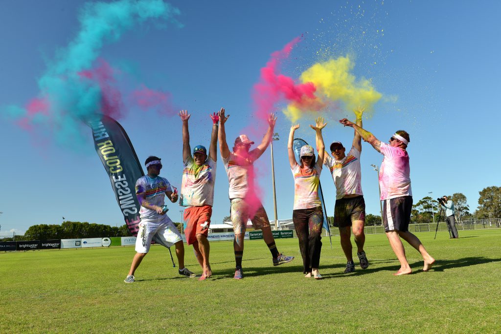Everyone is encouraged to meet at the finish for cold drinks, hot food, live music and the Super Colour Throw.