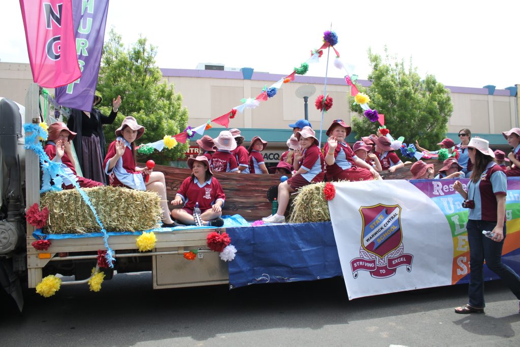 Forty-seven floats meandered down Palmerin St showing off the hard work of students, parents, teachers, businesses, clubs and organisations for the parade themed in line with Warwick's sesquicentennial (150th) birthday.