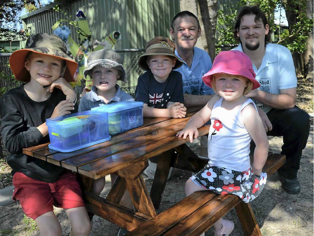 THE Warwick Men's Shed crew has been at it again, this time creating a picnic table for the Warwick Community Kindergarten on Dragon St.