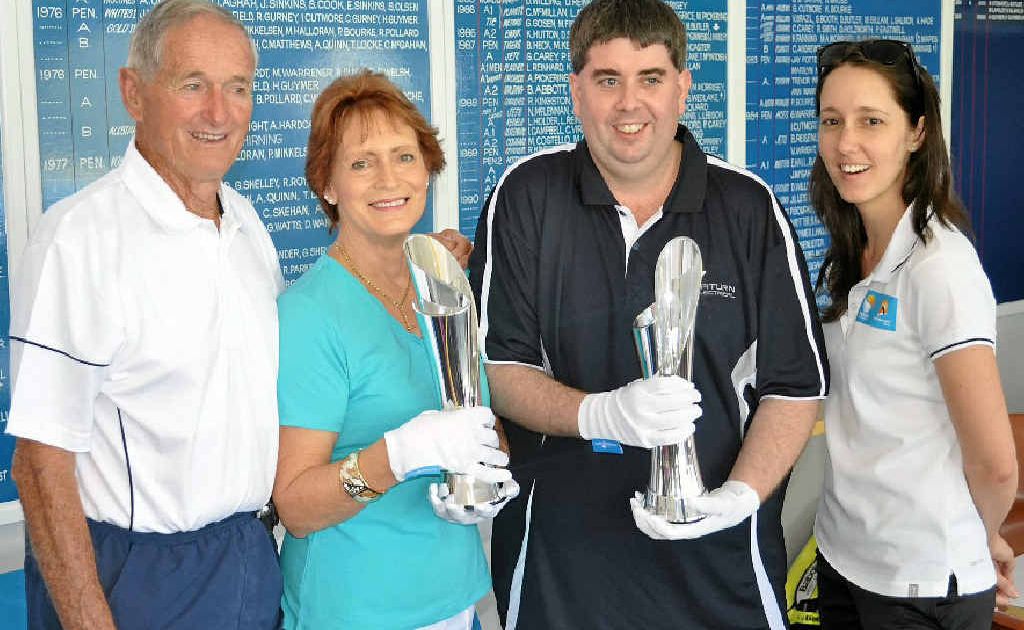 International tournament administration co-ordinator Beth Smith and community tennis officer Travis Dragojlo were in Warwick with the trophies, along with former United States Open singles champion Mal Anderson.