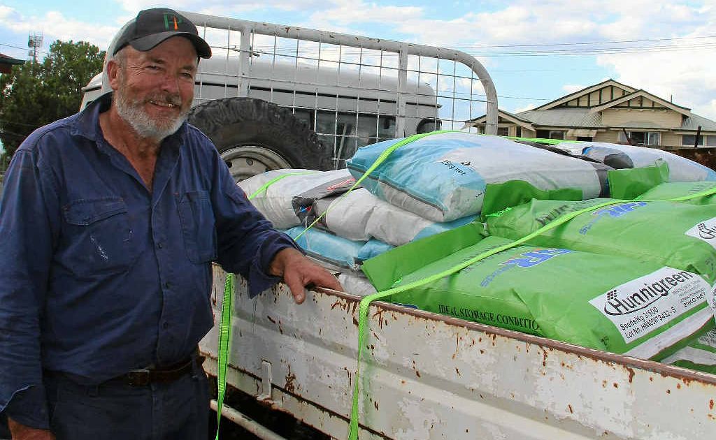 Goomburra Valley cattle farmer Norm Tranberg was one of many piling his ute full with seed and fertiliser from Olsen's Produce yesterday.