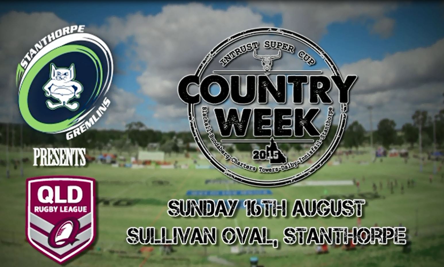 Intrust Super Cup will take place at Sullivan Oval in Stanthorpe with the Sunshine Coast Falcons taking on the Burleigh Bears in a head to head clash. The event will be broadcast live on TV as part of the QRL Intrust Super Cup Country Week. When: Sunday the 16th August 2015, Border Rugby League Games start at 10.00am, Main Game 1.40pm Where: Sullivan Oval Stanthorpe Cost: $10 Adults, $5- 15-17yrs, 14 & under 14 Free, Tickets at the gate.